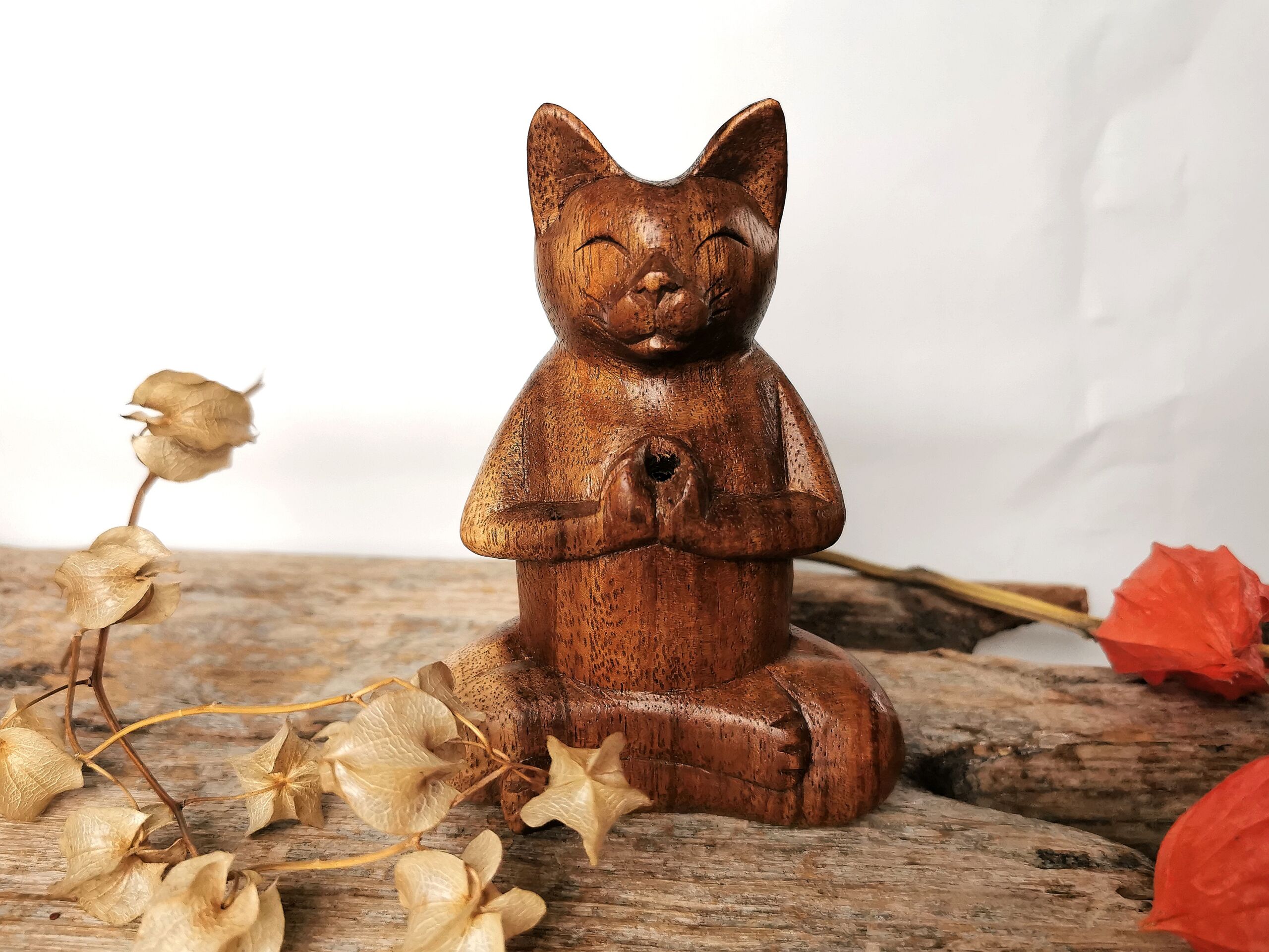 Joogakassi kujuline mangopuust viirukialus koonusviirukile, millele on iseseisev väike metallist topsike. Viiruk pannakse tossama ja kass asetatakse topsikese peale, viiruki suits väljub kassi käppade vahelt olevast august. Metallist topsikesel, kuhu koonusviiruk asetatakse, on põhjas auguline rest, et viiruk saaks põlemiseks õhku. Kaasas üks sandlipuu koonusviiruk.. Pane viiruk tossama, oota natuke ja aseta kass topsikese peale. Soovitame panna kassi ühe ääre alla tikukene vms., et viiruk saaks paremini õhku.